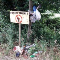 Poleg popisa izbranih delov vodotokov smo preverili tudi stanje nekaterih v preteklosti že zabeleženih divjih odlagališč. Kljub temu, da namen terena ni bil pobiranje odpadkov izven območja rečnega brega, pa na eni izmed lokacij preprosto ni šlo drugače, kot da smo ubogali opozorilno tablo z napisom “Odnesi smeti!” in očistili še kup smeti v njeni neposredni bližini.